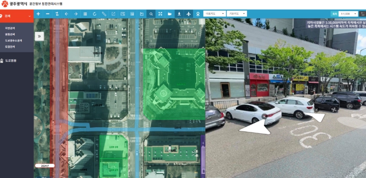 ‘도로점용 관리기능’은 항공사진과 로드뷰 등 최신 공간정보 기술을 활용, 광주 전역의 도로점용 현황을 시각화했다.