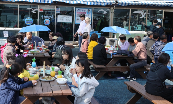 ![]() 강진마량놀토수산시장을 찾은 관광객들의 모습이다. |