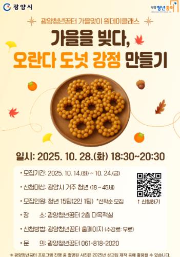 ![]() 광양청년꿈터, ‘오란다 만들기’ 원데이클래스 참가자 모집 |