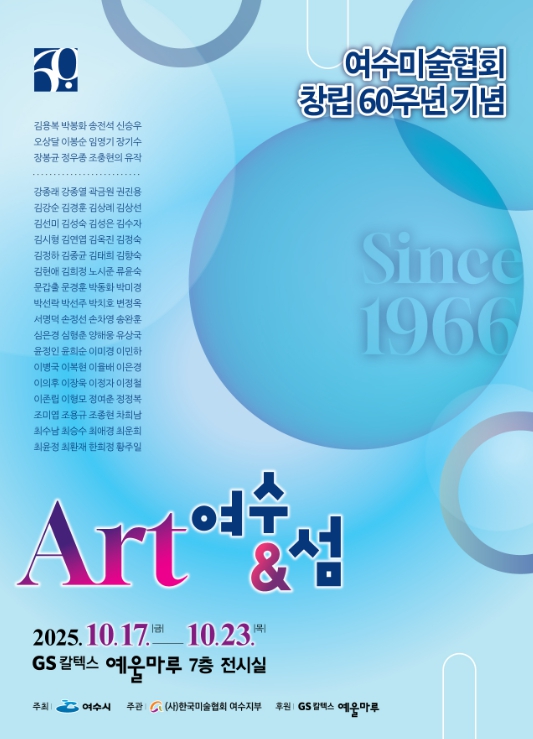 시 관계자는 “여수미술협회는 지난 60년 동안 지역 미술 문화의 뿌리를 지켜온 대표 예술단체로 이번 전시는 그 역사와 전통을 시민과 함께 나누는 뜻깊은 자리”라며 “섬과 예술이 어우러진 이번 전시가 2026여수세계섬박람회의 성공 개최 분위기를 조성하고 여수의 문화도시 브랜드 가치를 더욱 높이는 계기가 되길 기대한다”고 밝혔다.