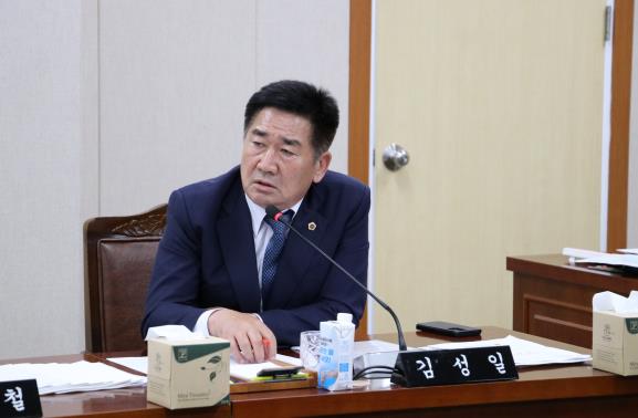 ![]() 김성일 도의원이 지난 10월 15일 상임위 회의에서 질의를 하고 있다. |