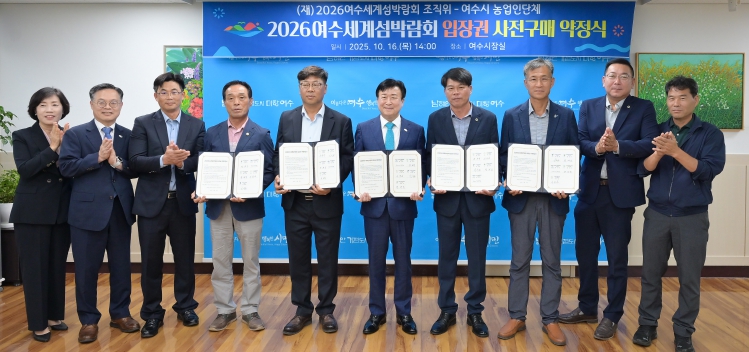 이날 약정식에는 각 단체 대표와 조직위원장 정기명 여수시장이 참석했으며, 농업인 단체는 섬박람회의 성공적인 개최와 시민 참여 확산을 위해 입장권 구매에 힘을 보태기로 했다.