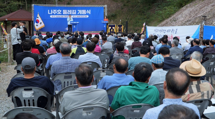 ![]() 나주시가 지난 17일 둘레길 인도교 광장에서 나주호 둘레길 개통식을 진행했다. |