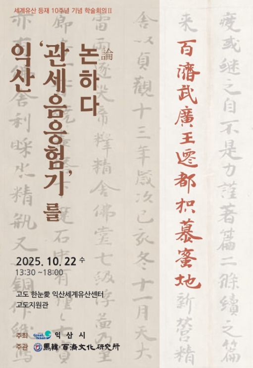익산시 관계자는 "이번 학술회의를 통해 관세음응험기의 사료적 가치와 진정성을 재조명해 백제왕도 익산의 역사적 정체성과 위상을 높이는 계기가 될 것으로 기대한다"며 "시민들의 많은 관심과 참여를 바란다"고 전했다.