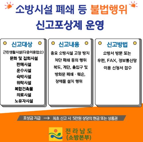 ![]() 나주소방서, 소방시설 불법행위 신고포상제 상시 운영 |