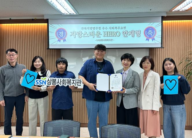 22일 전북지방병무청장은 LH삼봉사회복지관을 방문해 안재형 사회복무요원에게 표창장 및 부상품을 전달하며 격려와 응원의 메시지를 전했다.