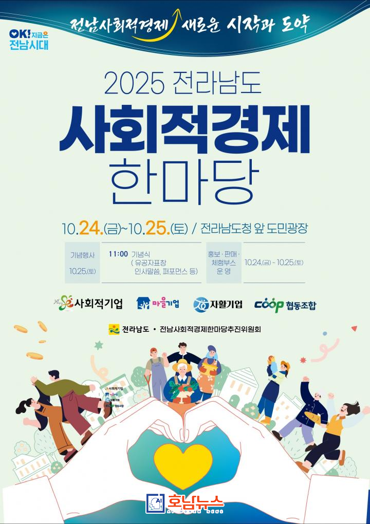 전라남도가 24일부터 25일까지 도청 앞 도민광장에서 ‘2025 전남 사회적경제 한마당’ 행사를 개최한다.