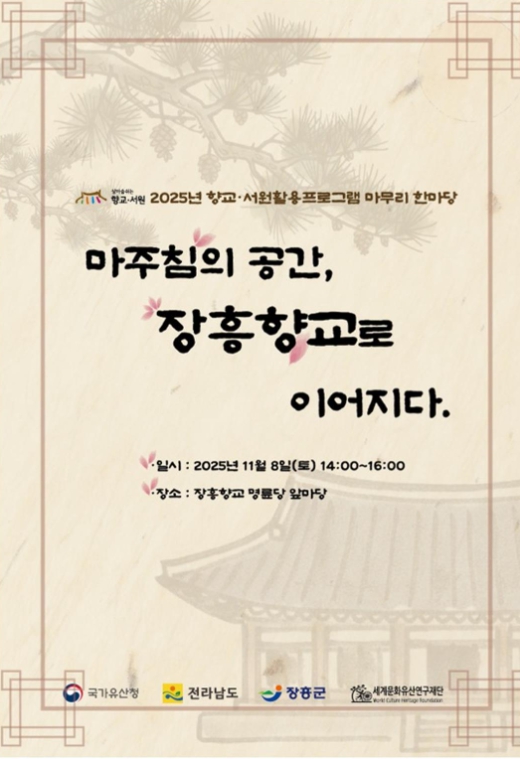 이번 행사는 장흥향교(전교 위승복)와 세계문화유산연구재단(원장 이범기)이 주최·주관하며, 국가유산청·전라남도·장흥군이 후원한다.