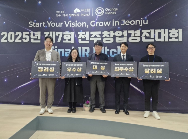 전주시와 (재)오렌지플래닛 창업재단은 30일 전북대학교 일원에서 ‘제7회 전주창업경진대회’의 최종 현장 발표를 통해 대상 오브제바이오팀, 최우수상 비응도등대가팀, 우수상 머쉬앤팀, 장려상 맑은상회에프엔비팀과 ㈜더봉동팀 등 총 5개 우수팀을 최종 선발했다고 밝혔다.