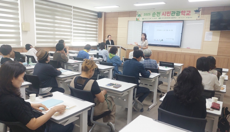 ![]() 순천 시민관광학교에 참여한 시민들이 치유분야 강좌를 듣고 있다. |