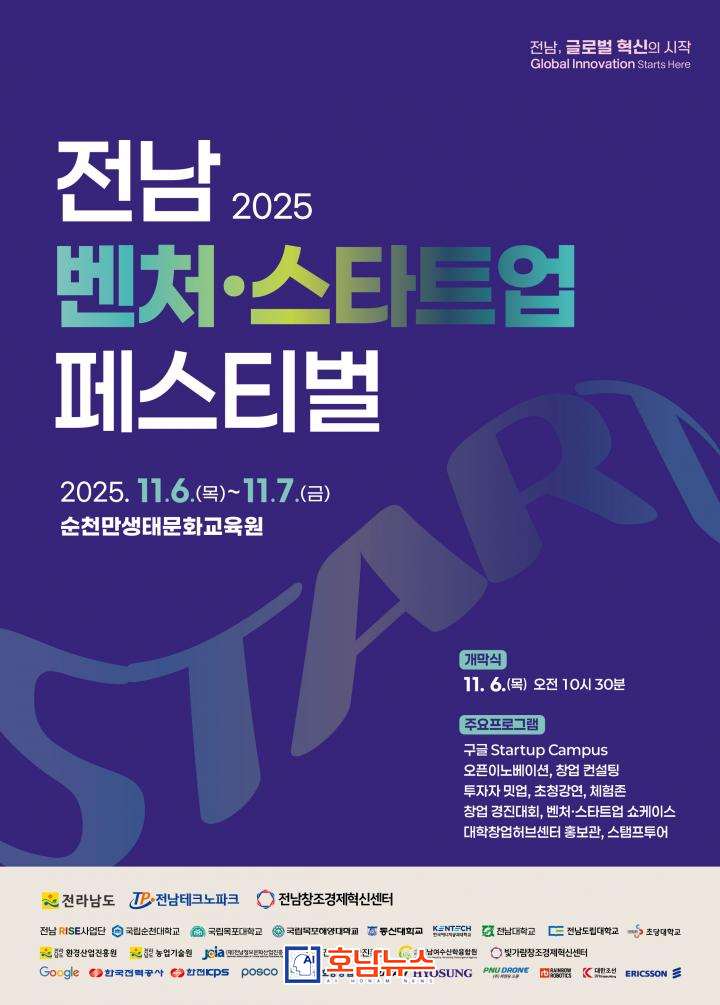 전라남도가 지역 창업 생태계의 도약을 위해 ‘제1회 전남 벤처·스타트업 페스티벌’을 6일부터 7일까지 순천만생태문화교육원에서 개최한다.