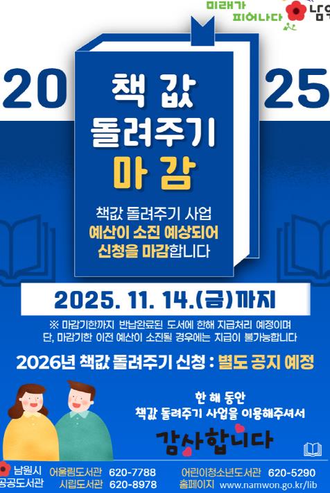 ![]() 남원시,'책값 돌려주기'11월 14일 조기 마감 시민 |