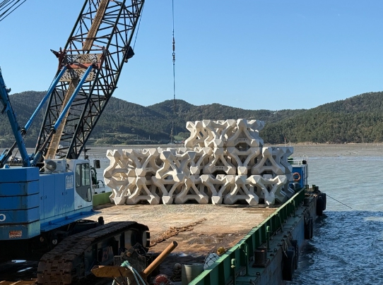 ![]() 산란·서식장으로 이동하고 있는 인공어초 |