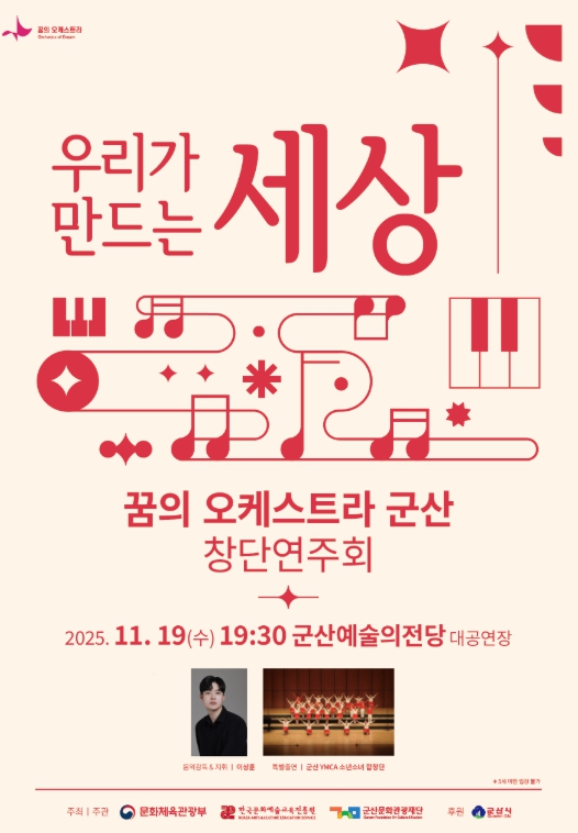 특히 이번 연주회는 단독 공연이 아닌 지역사회와의 화합을 위해 군산 YMCA 소년소녀합창단이 함께 무대에 올라 따뜻한 울림과 감동을 더할 예정이다.
