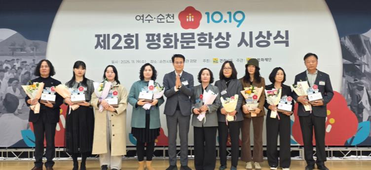 이길용 전남도 여순사건지원단장은 “아픔의 역사를 기억하고, 문학작품으로 승화해 메시지를 전해준 수상자들께 감사와 축하 인사를 전한다”며 “앞으로도 여수·순천 10·19 평화문학상이 평화와 인권을 이야기하는 대한민국 대표 문학상으로 자리매김토록 지속해서 발전시키겠다”고 말했다.