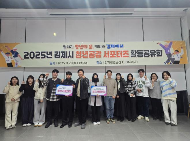 정성주 김제시장은 “청년들의 실제 목소리가 정책으로 이어질 때 도시의 미래 경쟁력이 생긴다”며 “2026년 청년공감 서포터즈 운영에도 청년 주도성과 실효성을 더욱 강화하겠다”고 밝혔다.