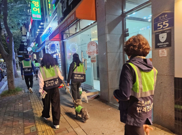 ![]() 지난 24일 수완동 반려견순찰대가 수완호수공원 일대 및 인근 주택가에서 치안 불안 요소와 안전 취약 지역을 점검했다. |