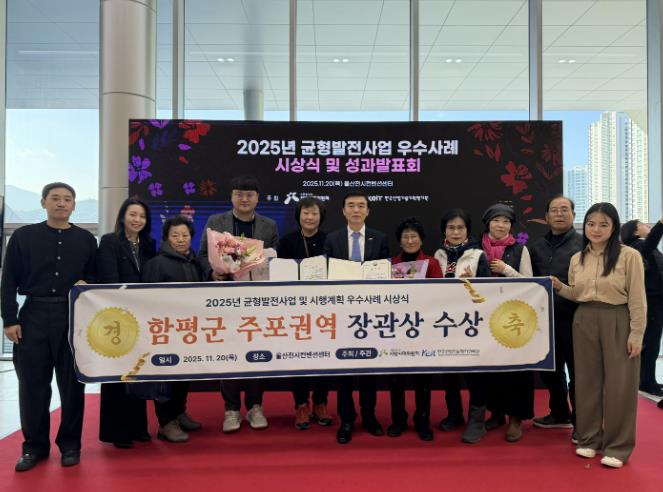 이번 수상으로 함평군은 2023년 취약지역생활여건개조사업으로 산업통상자원부장관상, 2024년 일반농산어촌개발사업의 시군역량강화사업으로 지방시대위원장 기관 표창을 받은 데 이어 3년 연속 균형발전 우수사례에 선정되는 성과를 이뤘다.