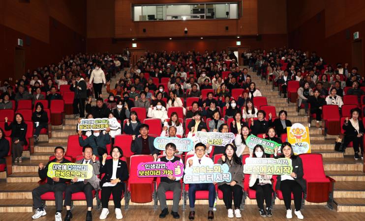 ![]() 보성군민은 오늘부터 건강하고 행복한 저속노화 시작_‘저속노화 오늘부터 시작’이라는 퍼포먼스를 하고 있다 |