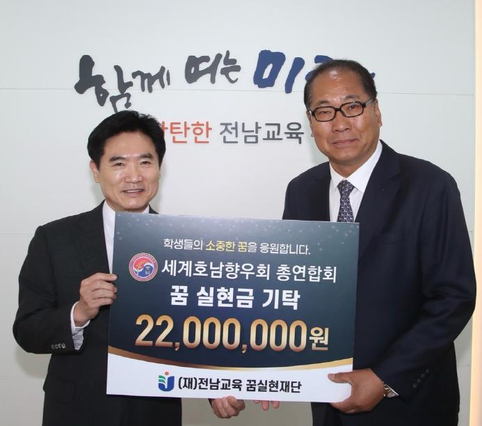 정광일 세계호남향우회 총연합회 사무총장은 “이번 기부가 지역인재 양성 기반 조성에 도움이 될 수 있기를 바란다”며 “우리 학생들이 전남의 민주, 평화, 인권 정신을 계승하여 민주시민의 자질을 갖춘 글로컬 미래인재로 성장하기를 기대한다”고 밝혔다.