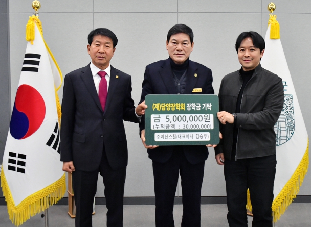 현재까지 ㈜이산스틸은 누적 3천만 원, ㈜고서삼화자원은 누적 6백만 원을 전달하며 지역 인재 육성에 힘을 보태고 있다.