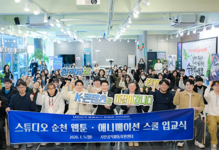 시 관계자는“문화콘텐츠 산업의 경쟁력은 결국 사람에게서 나온다”며, “‘스튜디오 순천’ 웹툰, 애니메이션 스쿨을 통해 순천이 문화콘텐츠 인재를 키우고, 인재가 다시 도시의 미래를 만들어가는 문화도시 기반을 만들어 가겠다”고 밝혔다.