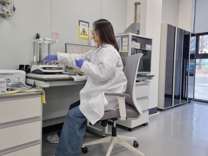 ![]() 농산물안전분석센터 토양검정 담당자가 토양 유기물을 분석하고 있는 모습 |