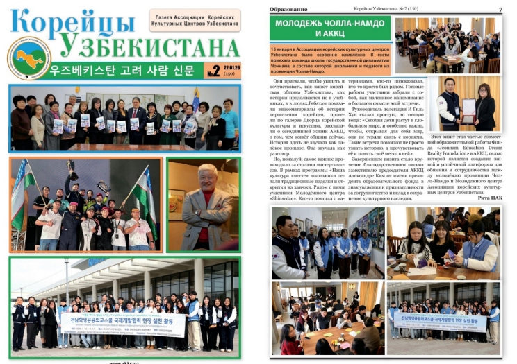 ![]() ‘우즈베키스탄 고려 사람 신문’에 게재된 전남학생공공외교스쿨 활동 모습. |