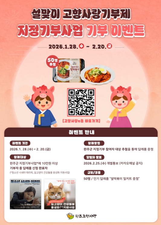 ![]() 완주군, 설 맞이 ‘지정기부’ 참여 이벤트 |
