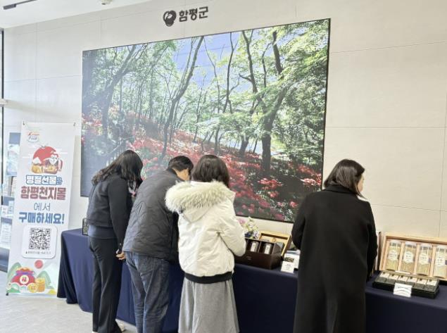 소비자는 홍보 테이블에서 상품을 직접 살펴본 후 온라인 함평천지몰에서 주문할 수 있다.