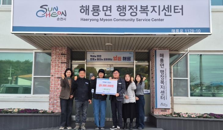 이번에 기탁된 후원금은 해룡면 복지사각지대에 놓인 50가구에 각 10만 원씩 지원될 예정으로, 명절을 앞두고 생계에 어려움을 겪는 취약계층에 실질적인 도움이 될 것으로 기대된다.