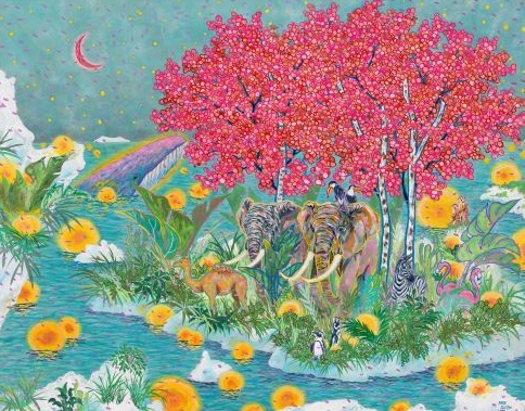 ![]() 윤우제 작, 기어이 자작나무는 분홍 꽃을 틔워냈고 그들의 여행 같은 표류는 시작되었다. (116x91, 장지에 수간안료, 2025) |