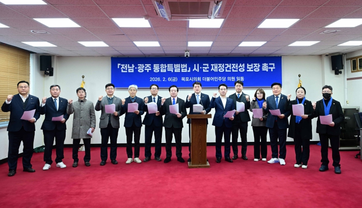 ![]() 목포시의회 더불어민주당,'전남·광주 통합특별법' 시·군 재정건전성 보장 촉구 성명 발표 |