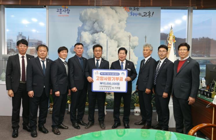 ![]() 고흥군, 농업인 단체 고향사랑기부금 1,300만 원 기탁 (1) - 왼쪽 5번째부터 이재철 (사)한국후계농업경영인 고흥군연합회 회장, 공영민 고흥군수. |
