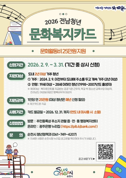 ![]() 순천시, 전남청년 문화복지카드 지원사업 |