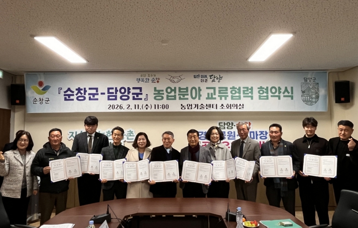 설순웅 농업기술센터 소장은 “이번 협약은 인접 지역 간 농업인단체가 주축이 되어 상호 발전을 도모하는 의미 있는 첫걸음”이라며 “앞으로도 담양군과의 긴밀한 협력을 통해 농업인의 역량 강화와 지역 농업의 지속가능한 발전을 위해 적극 노력하겠다”고 말했다.