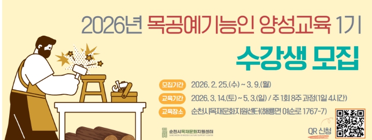 ![]() 2026년 목공예기능인 양성교육 1기 수강생 모집 |