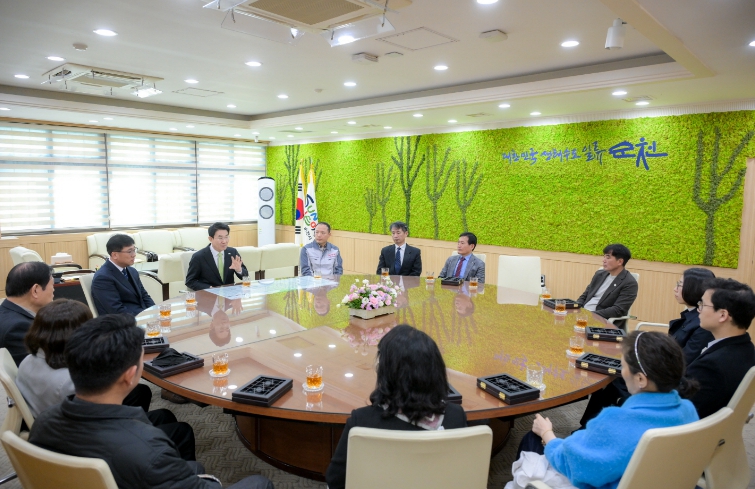 ![]() 지방세 유공납세자에게 인증패를 수여하고 차담을 나누고 있다. |
