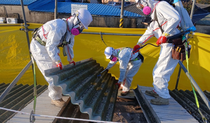 ![]() 슬레이트 철거 공사가 진행중인 모습. |