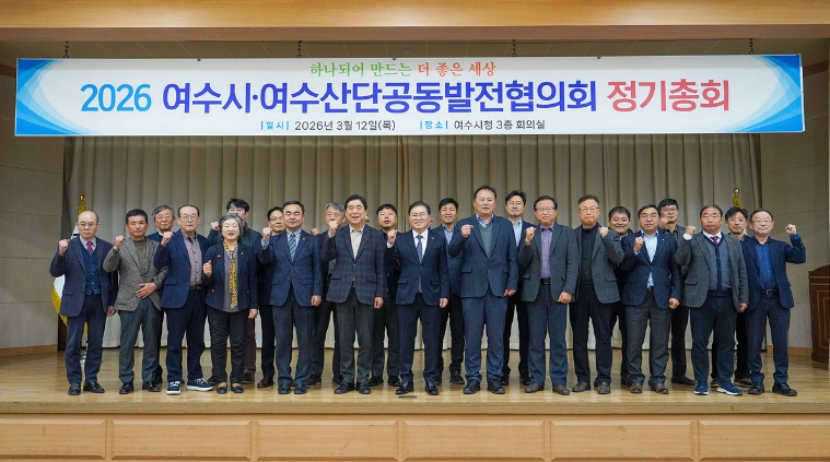 ![]() 여수시·여수산단공동발전협의회(이하‘공발협’)는 지난 12일 시청 회의실에서 ‘2026년 정기총회’를 개최했다. |