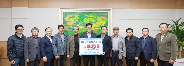 함평군은 19일 “함평군 정유생 회원 일동이 전날 군수실에서 인재양성기탁금 1천만원을 전달했다”고 밝혔다.