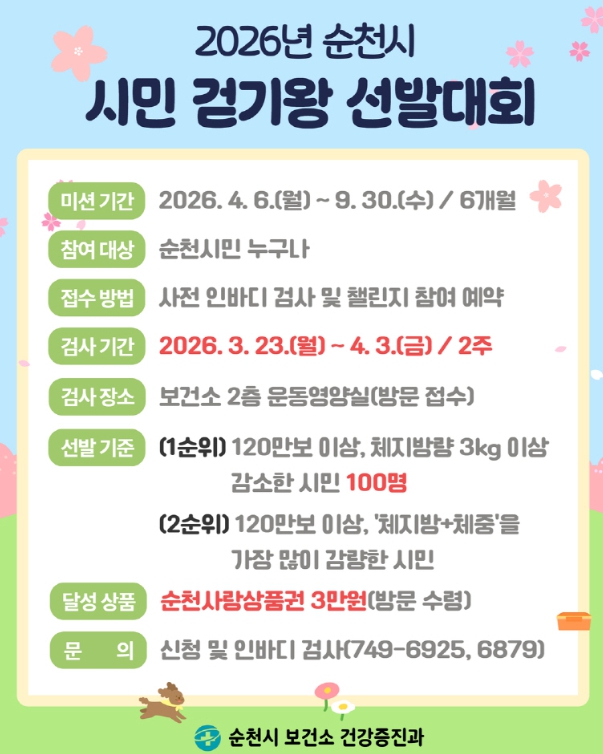 ![]() ‘2026년 시민 걷기왕’ 선발 |
