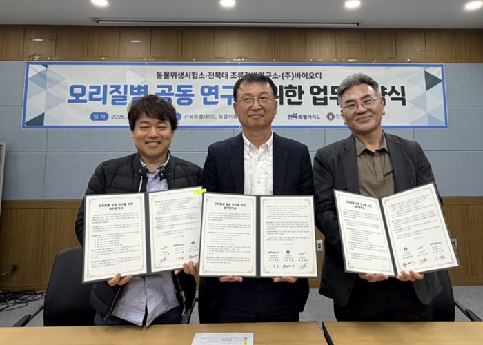 특히 동물위생시험소는 오리 병성감정 등 질병검사 데이터베이스를 공유하고, 전북대학교 조류질병연구소는 최신 연구동향 제공과 첨단 진단기법 개발을 맡는다. ㈜바이오디는 연구자료를 활용해 진단키트 제작과 보급을 담당할 예정이다.