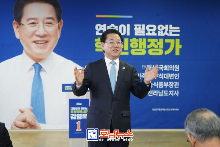 In response, Kim Young-rok said, “I sincerely appreciate Rep. Lee for coming all the way here to offer his strong support,” adding, “As we have walked similar paths, I will continue forward, hoping he will follow, and we will move together to build the future of Jeonnam and Gwangju.”