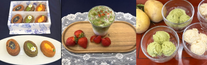 ![]() 보성군, ‘제49회 보성다향대축제’ 먹거리 시식회 개최_축제장 먹거리 부스 디저트(녹차로만든 빵, 말차딸기라떼, 녹차젤라또) |