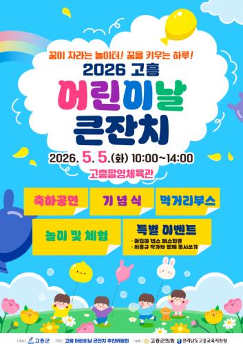 행사는 오는 5월 5일 고흥팔영체육관에서 진행되는 ‘2026 고흥 어린이날 큰잔치’ 일환으로 마련된다.