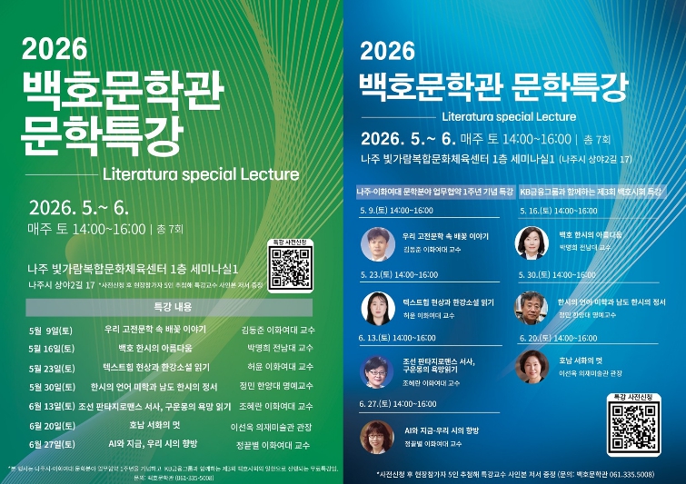 ![]() 2026 백호문학관 문학특강 포스터 |