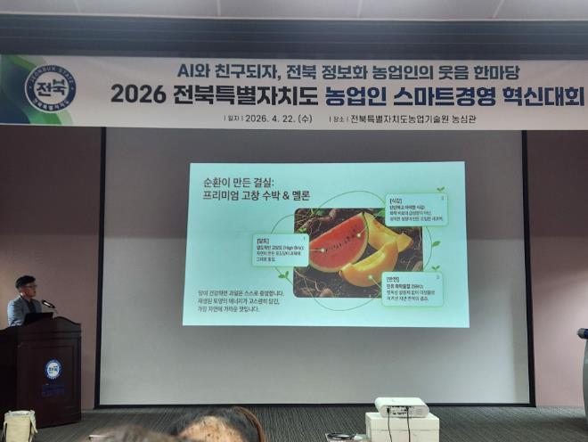 우수상을 수상한 김난슬(상하면)씨는 ‘AI 비서로 5명 몫을 해낸 스마트 농업경영’을 주제로 AI를 활용한 농업 경영 및 정보 활용 사례를 발표했다.