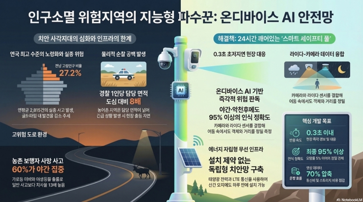 사업은 국립순천대학교, ㈜참좋은넷, ㈜지아이랩이 공동 참여하고, 전남자치경찰위원회가 연구개발협력기관으로 현장실증과 정책 연계를 담당한다. 총사업비는 국비 9억 3천300만 원 규모로, 2027년 12월까지 20개월간 추진될 예정이다.