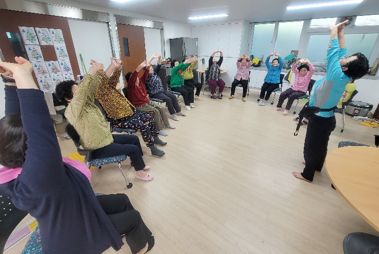 ![]() 광산구 한 마을복지관에서 주민들이 체조 교실을 진행하고 있다. |